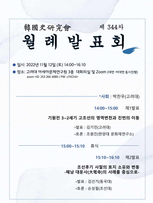 ○ 장소 : 고려대 아세아문제연구원 3층 대회의실 및 Zoom(대면・비대면 동시진행)