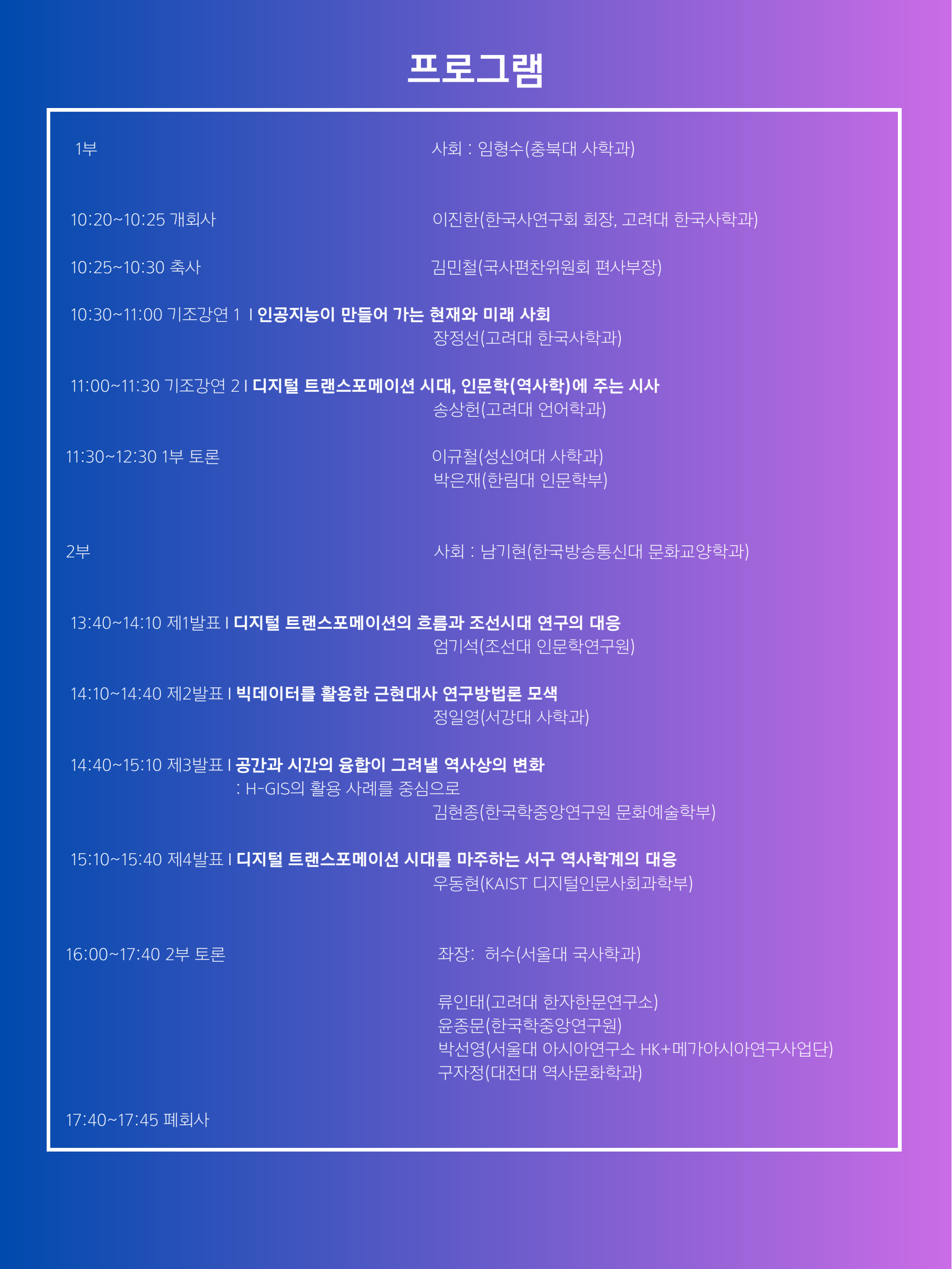 한국사연구회 학술회의 '디지털 트랜스포메이션(Digital Transformation) 시대와 한국사의 미래'