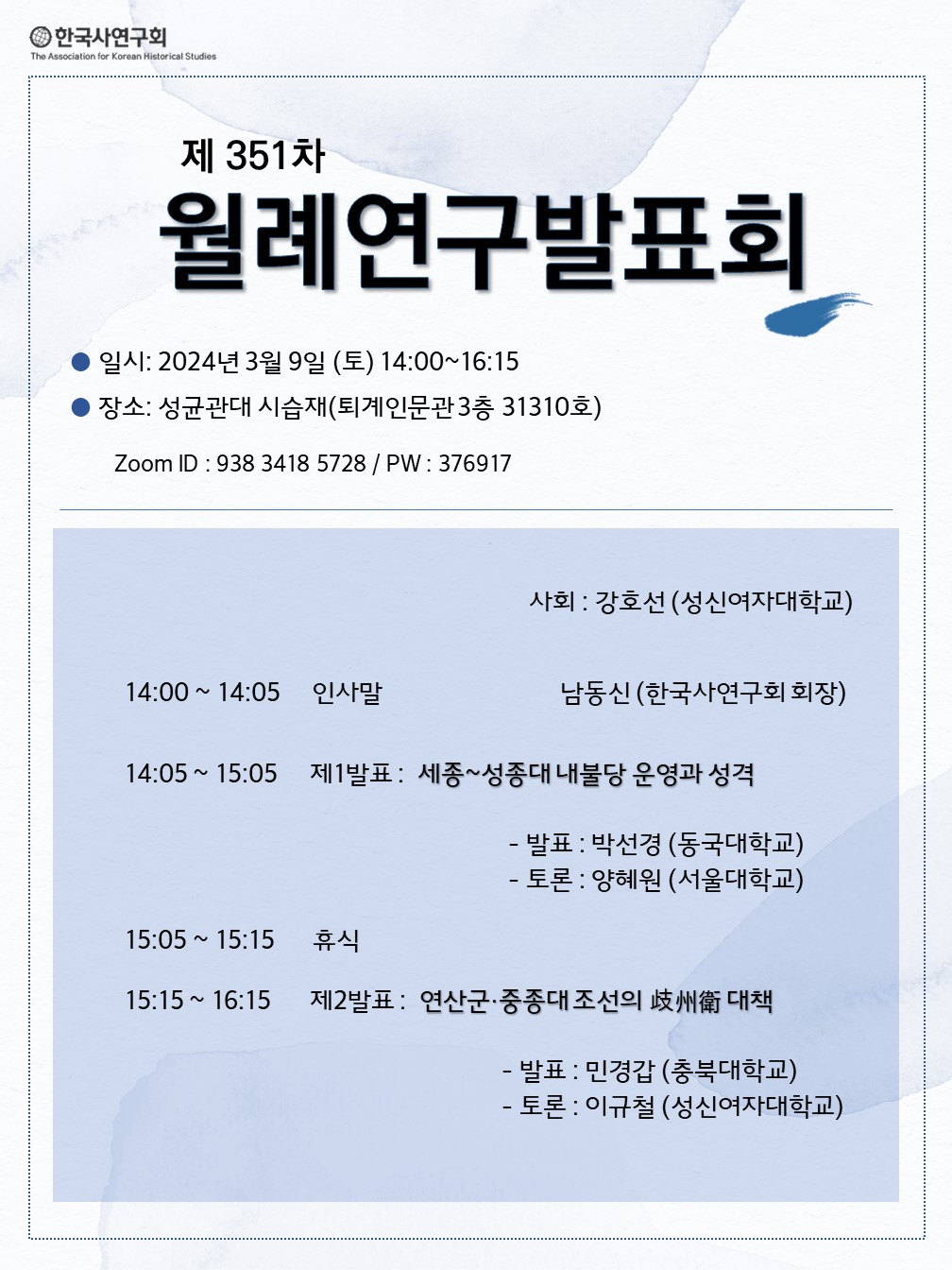 한국사연구회에서 3월에 진행될 월례연구발표회를 안내해드립니다.
